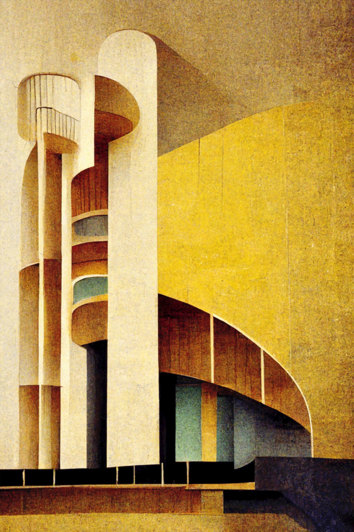 A bold celebration of Alvar Aalto's sculptural modernism, this architectural abstract print captures his mastery of light, rhythm, and materiality. Rendered in rich ochres, ivory, and shadowy greys, this poster evokes a sense of timeless calm — where geometric rigor meets organic freedom. Inspired by Aalto's curved forms and warm approach to architecture, it brings architectural poetry to any modern interior.