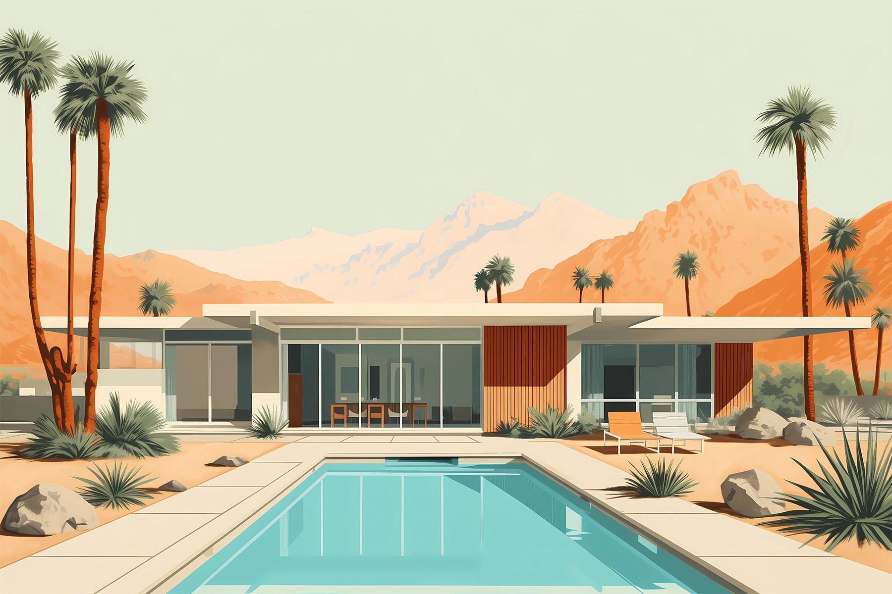 Mid-Century Modern Desert Poolside Print – Palm Springs Architecture