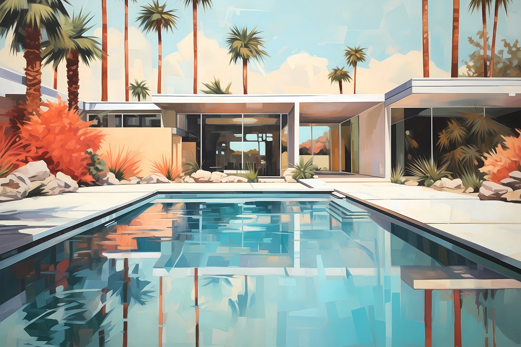 Palm Springs Poolside Mid-Century Modern Wall Art – Desert Architecture